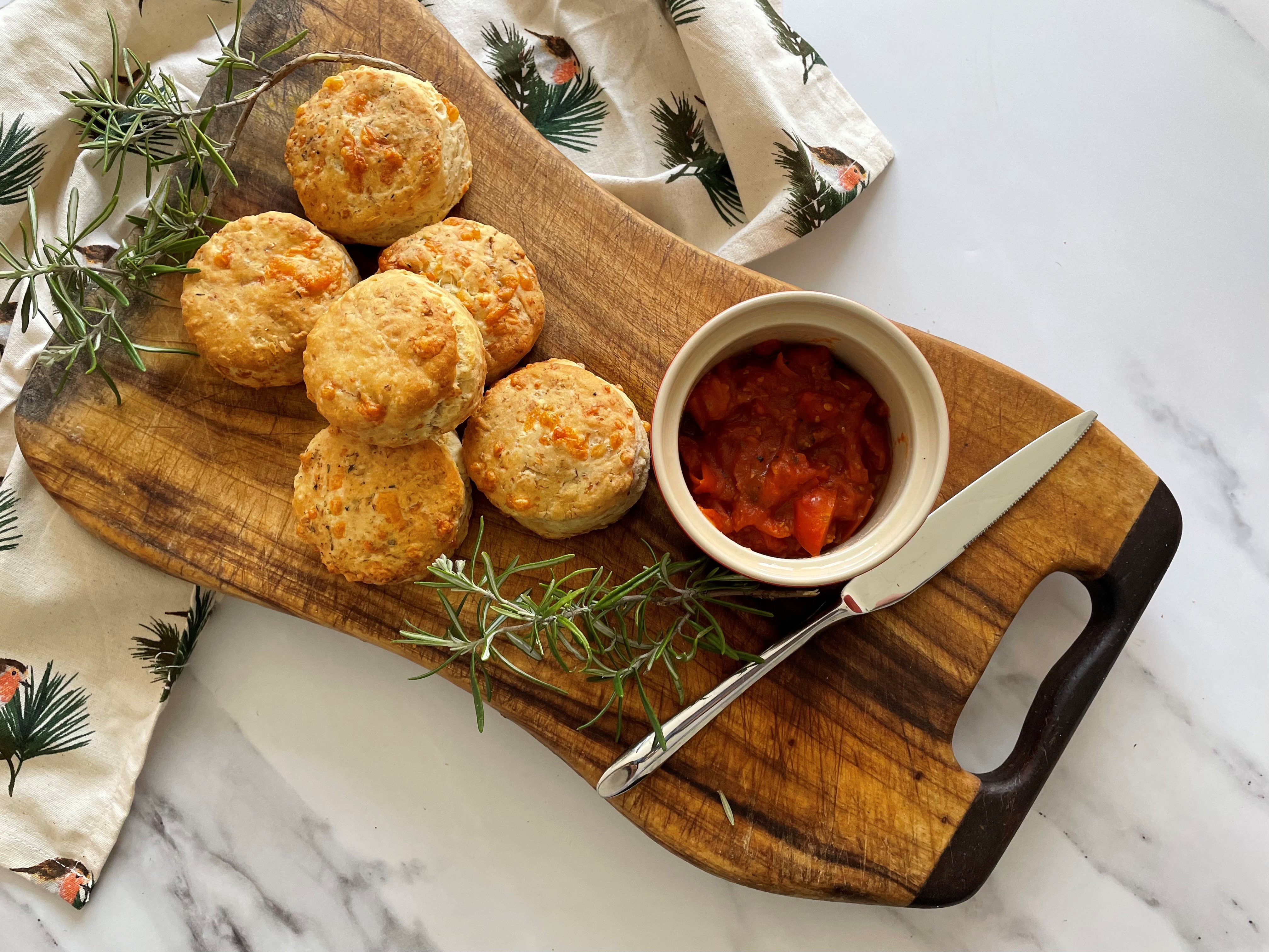 7 Serve scones with tomato chutney – tastes great the next day when heated under the grill.