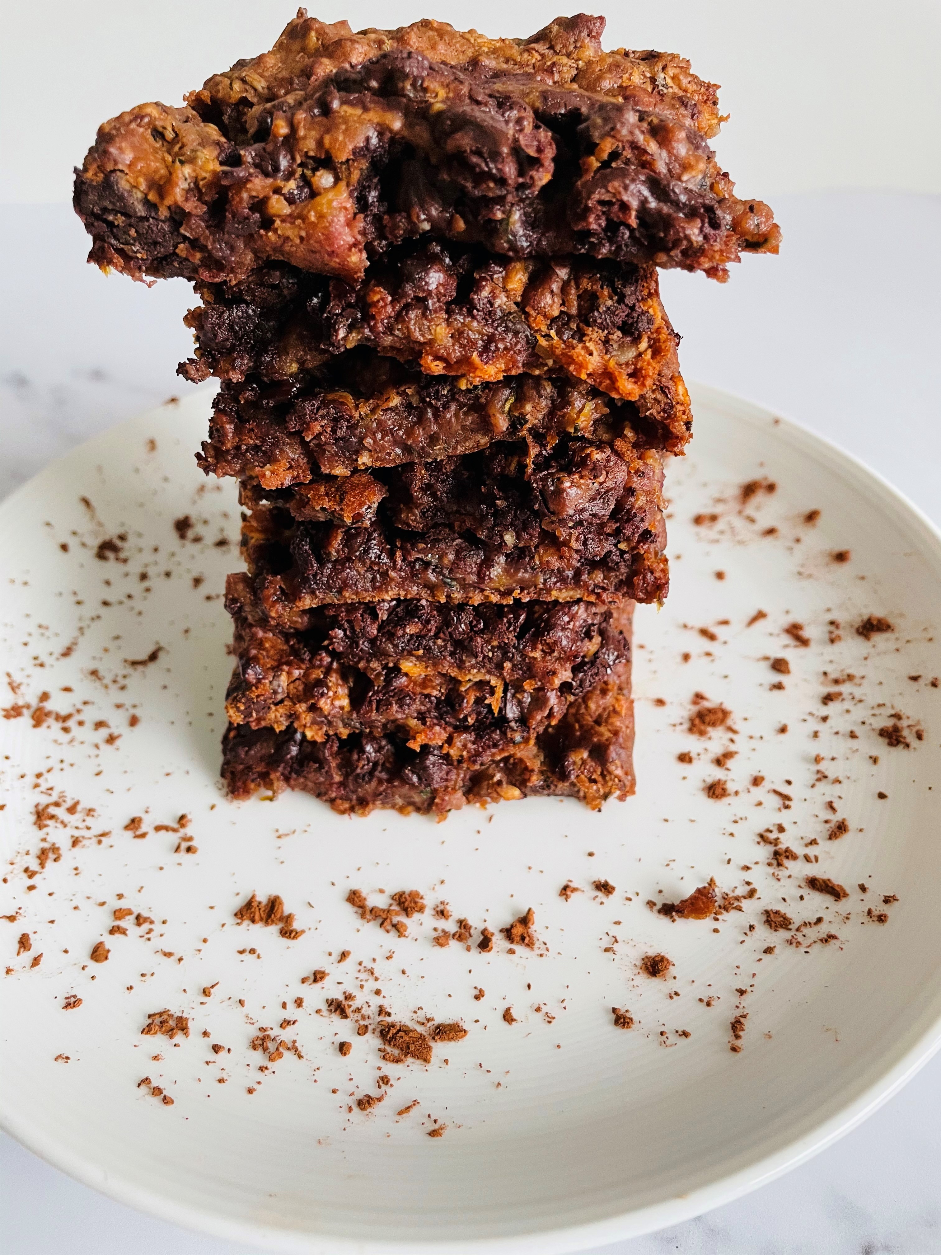 6 Bake for about 45 minutes until golden. These brownies are gooey and sticky so allow to cool before cutting into squares. If you prefer your brownies to be more chunky use a smaller baking tin for depth. I used a medium sized square tin so these brownies are slightly less in depth.