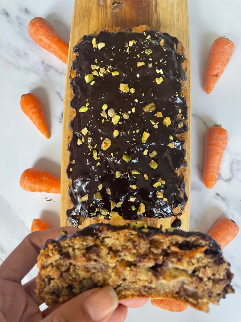 7 To make the frosting melt the dark chocolate, add the coconut milk and syrup and spread over the cake. This cake is great served with custard or yoghurt.
