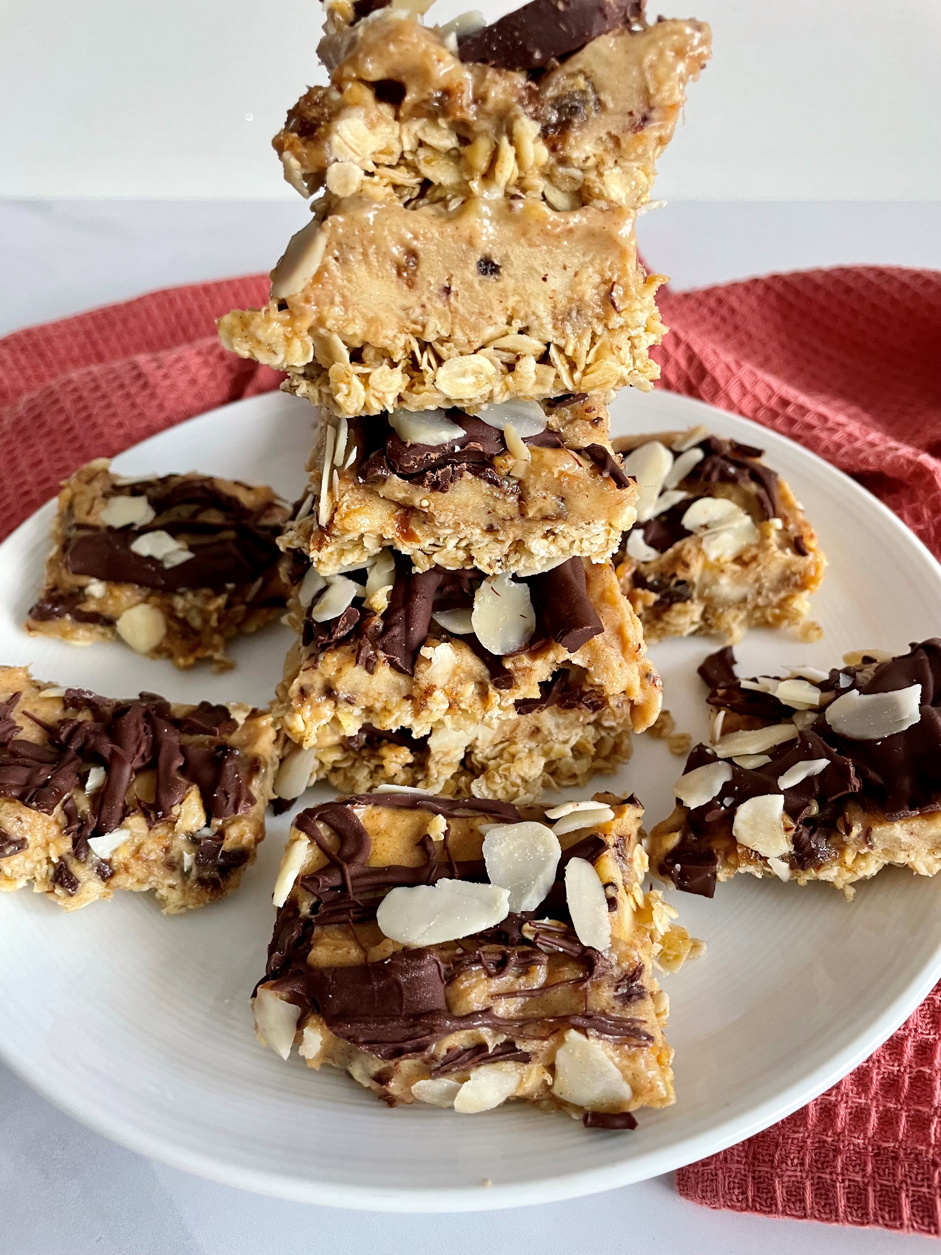 7 Pop back into the freezer to completely set. Slice the bars into squares and keep in an air tight container. These bites are best kept in the freezer, when you want to have a bite take them out of the freezer 30 minutes before. Alternatively they can be kept in the fridge, they will be more gooey.