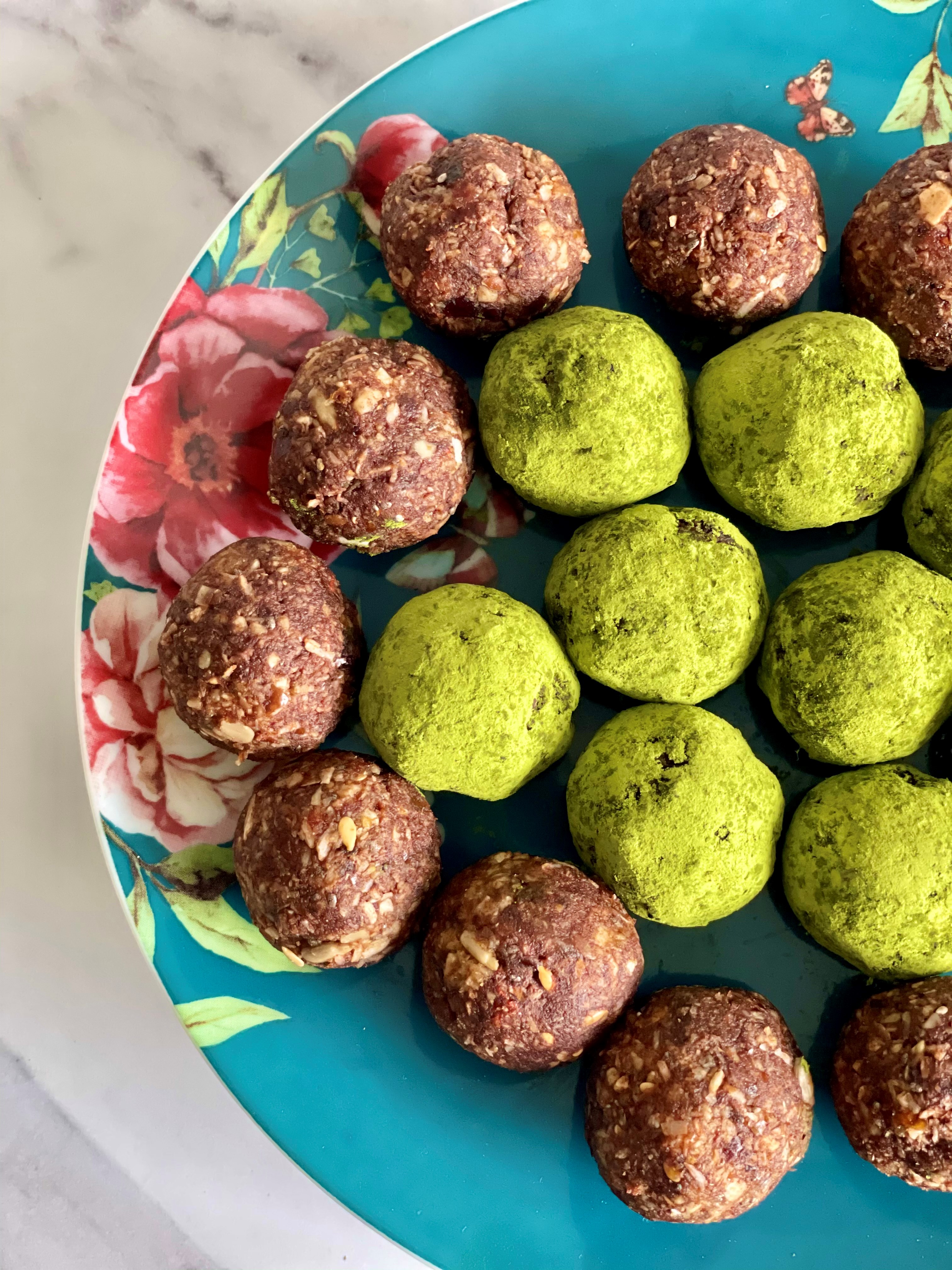 2 Make into round balls using your hands and coat with some matcha powder, can dip them into some melted chocolate or leave as plain.