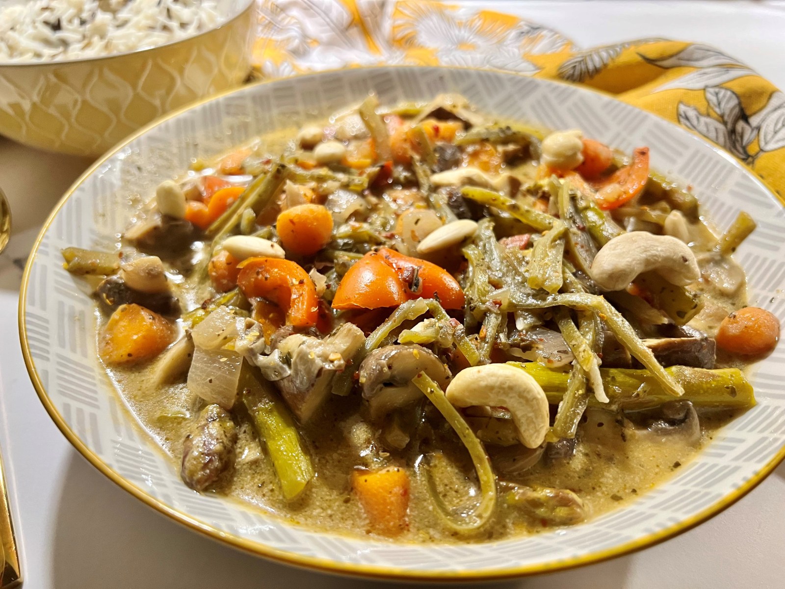 A nourishing vegetable Thai curry made with plenty of vegetables and flavoured with coconut milk.