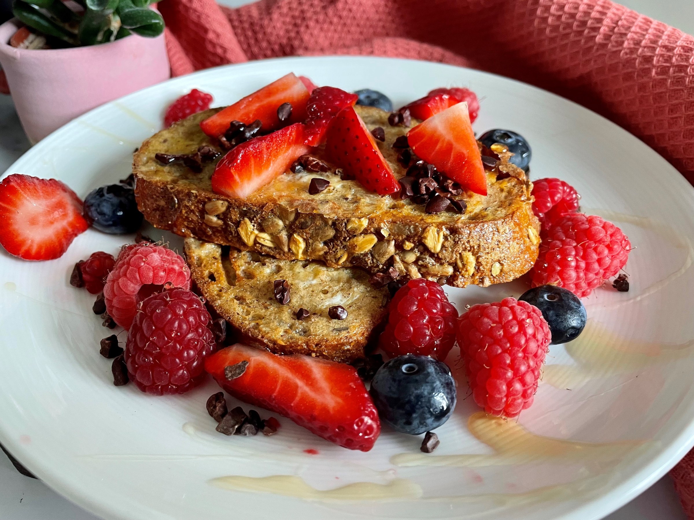 Why not try this feel good breakfast/brunch recipe made with eggs and berries and simple to whip up Serves 1-2, this recipe has been made in the ninja-air-fryer Ingredients• 1 egg• Splash of milk• 2 slices of bread of your choice • 1/4 tsp of cinnamon powder• 1 tsp of vanilla extract• Berries to garnish• Honey to drizzle and cacao nibs or chocolate chips to garnish …
